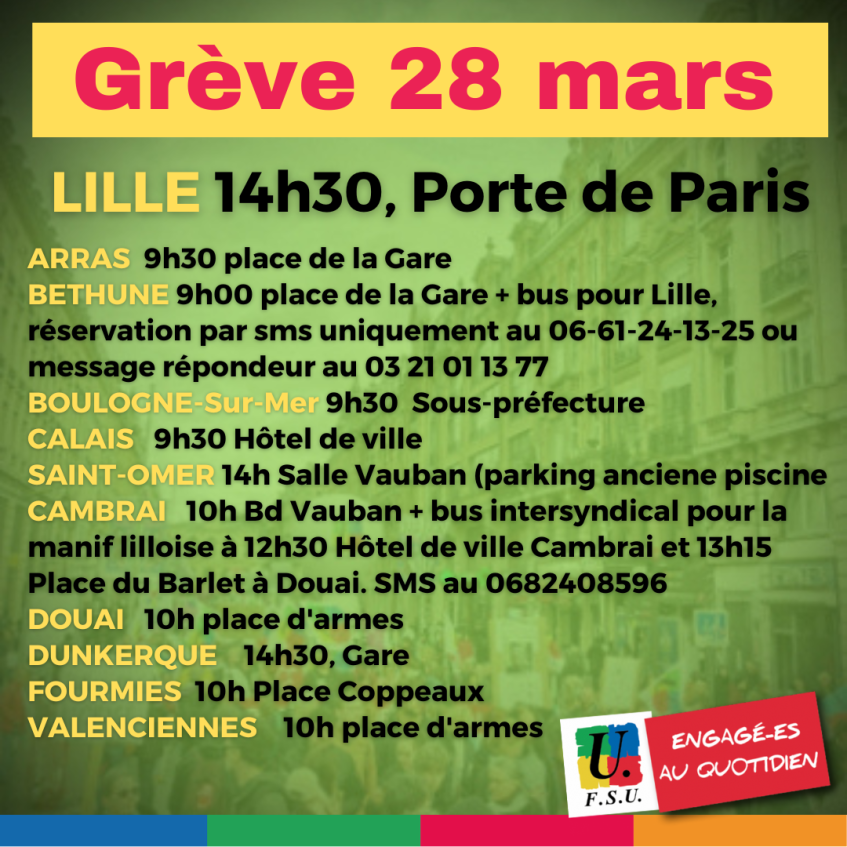 Revendiquant le retrait de la réforme des retraites, l’intersyndicale appelle les millions de travailleurs et travailleuses, les jeunes et les retraités à continuer de se mobiliser. Elle appelle à des rassemblements syndicaux de proximité ce week-end et à une nouvelle grande journée de grève et de manifestations mardi 28 mars partout dans le pays.